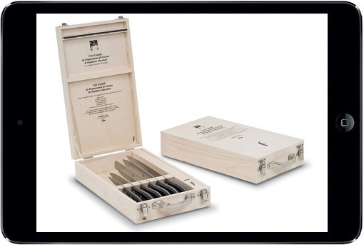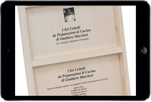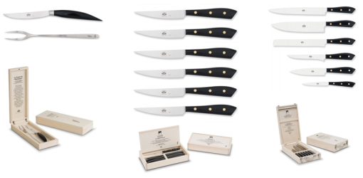 Tree excellent hand made knifes sets, in an elegant wood box, whit precious help of Maestro Gualtiero Marchesi: